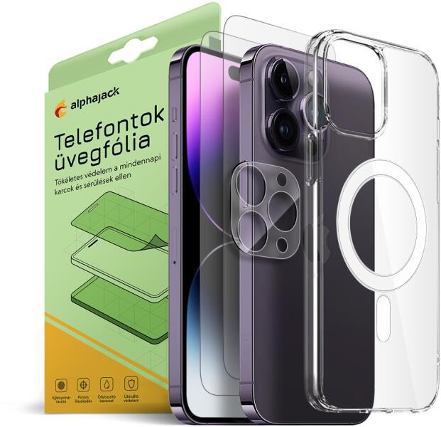 A termék a kamera lencse védő mérete miatt csak az iPhone 14 Pro Max szériával kompatibilis. Minőségi HD 2.5D 0.33mm 9H kijelzővédő üvegfólia (2db), plusz kamera lencse védő üvegfólia(1db), áttetsző MagSafe kompatibilis TPU tokkal. Megvédi telefonja kijelzőjét a karcoktól, kisebb külső behatásoktól. Zsír-olajtaszító felülete ujjlenyomat mentes használatot biztosít.