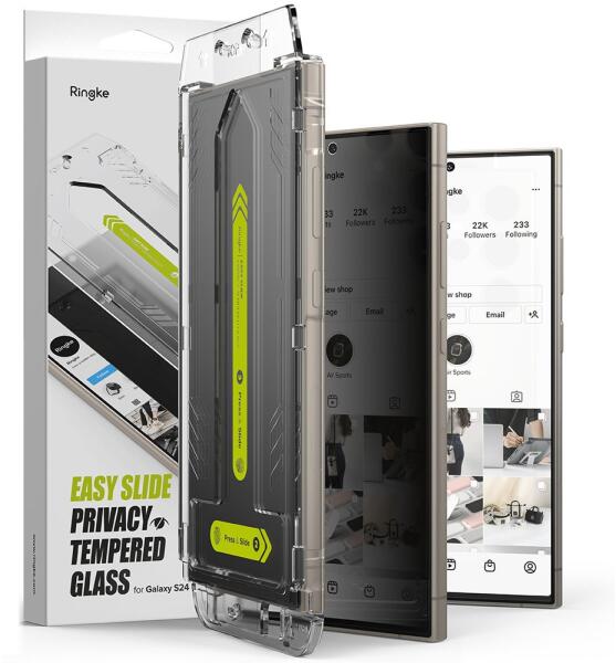 A kiváló minőségű Ringke Easy Slide edzett üveg védőszűrő funkcióval ideális módja annak, hogy megvédje a képernyőt a sérülésektől, és korlátozza annak láthatóságát illetéktelenek számára. A polarizációs szűrő 28°-os szögben korlátozza, 40°-os szögben pedig teljesen megszünteti a képernyő láthatóságát. Az üveg keménysége 9H, ami elegendő érték a k