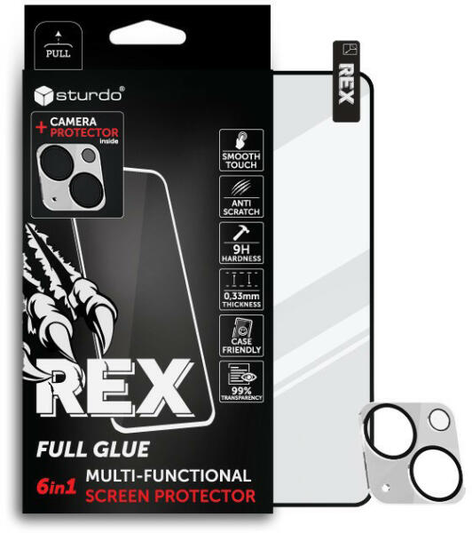 Sturdo REX Kijelzővédő üveg iPhone 15 Plus, fekete, Full Glue 5D A védőüveg praktikus kiegészítője a telefonoknak, amellyel megvédheti kijelzőjét a sérülésektől. 100% -ban átlátszó, nem zavarja a kijelző paramétereit. A vékony kialakításnak köszönhetően nem feltűnő, nem növeli jelentősen a készülék teljes vastagságát.