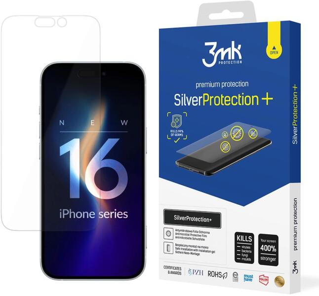 Az Ön és telefonja biztonságáért. A védőfólia 400%-kal erősíti meg a kijelzőt, és az antimikrobiális bevonat 99%-ban pusztítja el a baktériumokat, vírusokat, gombákat és penészt. A SilverProtection+ tisztán tartja a telefonját. Éjjel-nappal pusztítja a vírusokat, baktériumokat, gombákat és penészt. A telefonok összegyűjtik a baktériumokat. Az okostelefonja folyamatos