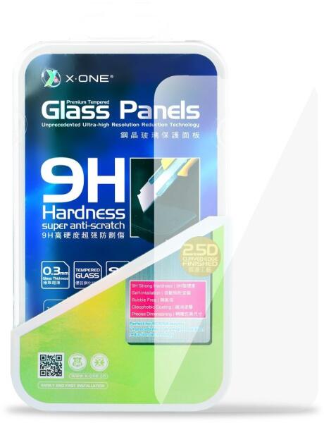 X-one edzett üveg teljes ragasztófelülettel. Az üveg az egész képernyőt lefedi és tökéletes tapadást biztosít, így nem marad hely szennyeződések vagy por felhalmozódására. Az üveg lefedi az egész képernyőt, beleértve a kijelző ívelését is. A teljes felületen lévő ragasztó miatt tökéletesen tapad a képernyőre légbuborékok nélkül. Oleofób bevonat biztosítja a
