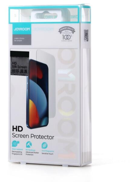 Az iPhone 15 Pro-hoz tervezett Joyroom edzett üvegfólia kiváló védelmet nyújt készüléked számára, megóvva azt a karcoktól és ütésektől. A speciális portaszító felület segít tisztán tartani a képernyőt, csökkentve a szennyeződések és ujjlenyomatok lerakódását. A fóliát elegáns fekete keret veszi körül, amely tökéletesen illeszkedik a telefon dizájnjához, mik