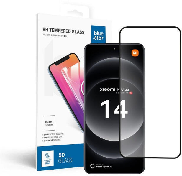 Blue Star edzett üvegfólia Xiaomi 14 Ultra, edzett üvegfólia, Full Face Az edzett üveg Blue Star 5D Full Glue tökéletes védelmet nyújt a mobiltelefon képernyőjének a felső peremtől az alsó részig. Az 5D technológia eredményeképpen a teljes képernyő lefedése, beleértve a kijelző lekerekítését is. Nagyon jól illeszkedik, így nincs helye a szennyeződésnek és a pornak.