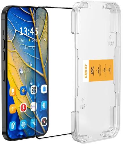ENKAY Honor 200 Smart edzett üveg képernyővédő fólia, 9H, felhelyezést segítő kerettel, fekete szél