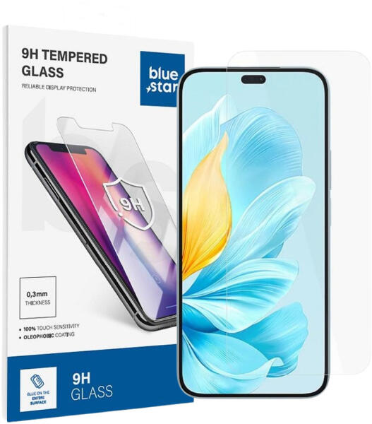 Honor 200 Lite 5G / X8b üvegfólia, tempered glass, előlapi, edzett, Bluestar részletes leírása : Az üvegfólia Honor 200 Lite 5G és Honor X8b mobiltelefon képernyőjéhez igazodva lett kialakítva, amely a képernyő sík részén teljesen feltapad és lefedi, ezálltal hatékony védelmet nyújt a karcolások ellen készülékének. A védőfólia 100%-ban átlátszó, 0.3mm vastagságú