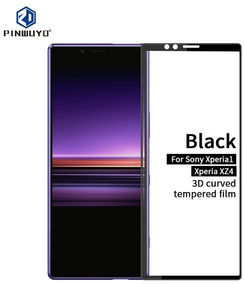 Sony Xperia 1 / Xperia XZ4 fekete 3D-teljes lefedettséget biztosító Karcálló, ütésálló kijelzővédő üvegfólia, 9H tempered glass, törlőkendővel 3D