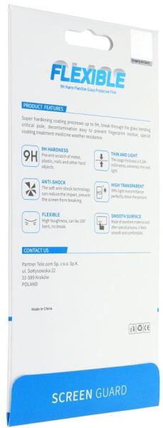 Rugalmas hibrid üveg a Bestsuit-tól ultravékony kialakítással. Mivel az üveg nem fedi le a teljes képernyőt, rendkívül könnyen felszerelhető még az átlagos felhasználó számára is. A modern formulának köszönhetően jól tapad a képernyőhöz, megvédve azt a karcolásoktól. A nagyfokú átlátszóság tökéletes képtisztaságot biztosít. A 0,267 5Gmm-es edzett üveg és a