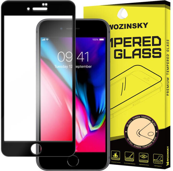 iPhone 7/8 Wozinsky Glass Screen 5D Full Glue teljes kijelzős edzett üvegfólia (tempered glass), 9H keménységű, tokbarát, fekete Tökéletes illeszkedés! A termékkép esetenként csak illusztráció! Amennyiben készüléked típusát ismered, és a megfelelő kategóriát választod, biztos lehetsz benne, hogy készülékeddel kompatibilis üvegfóliát rendelsz tőlünk! Az üvegfóliá