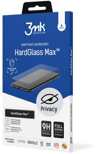 3MK HardGlass Max Privacy iPhone 12/12 Pro teljes képernyős ujjlenyomamentes edzett üvegfólia, fekete HardGlass Max Privacy - Az egész képernyőre kiterjedő adatvédelmi edzett üveg Privacy - 30 fokos szögből homályosítja és sötétíti a képet Privacy - 30 fokos szögből homályosítja és elsötétíti a képet. Könnyű összeszerelés - a készletben található tartozékoknak