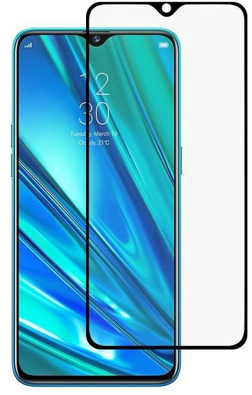 Oppo Realme 5 Pro teljes lefedettséget biztosító Karcálló, ütésálló kijelzővédő üvegfólia kerettel, tempered glass, törlőkendővel