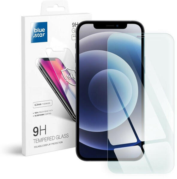iPhone 12 / 12 Pro üvegfólia, tempered glass, előlapi, edzett, Bluestar részletes leírása : Az üvegfólia iPhone 12 (6.1") és iPhone 12 Pro (6.1") mobiltelefon képernyőjéhez igazodva lett kialakítva, amely a képernyő sík részén teljesen feltapad és lefedi, ezálltal hatékony védelmet nyújt a karcolások ellen készülékének. A védőfólia 100%-ban átlátszó, 0.3mm vastags