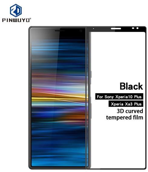 Sony Xperia 10 Plus / Xperia XA3 Ultra fekete 3D-teljes lefedettséget biztosító Karcálló, ütésálló kijelzővédő üvegfólia, 9H tempered glass, törlőkendővel 3D