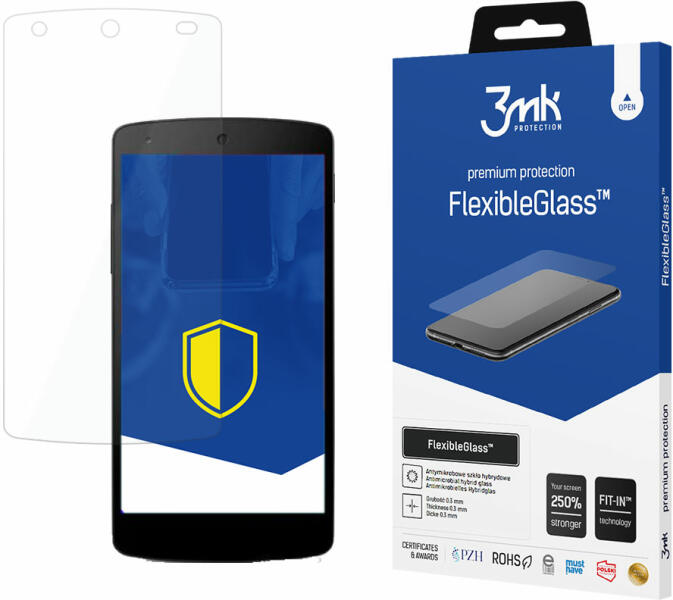 FlexibleGlass hibrid védőüveg 3mk LG Nexus 5 telefonhoz - Átlátszó Védőüveg a 3mk márkától, mely egyedülálló védelmet biztosít okostelefonjának kijelzője számára. A kijelző apró karcolásait kiegyenlíti, valamint megakadályozza a továbbiak kialakulását. Tökéletes kombináció: A védőüveg ezen típusa új generációt, "hibrid" védőüveget jelent. Kombinálja a v