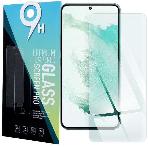 Samsung Galaxy S22 Plus 5G (S22+ 5G) (S22+) / S23 Plus 5G (S23+) üvegfólia, tempered glass, előlapi, edzett, 9H, 0.3mm részletes leírása : Az üvegfólia Samsung Galaxy S22 Plus 5G (S22+ 5G) SM-S906B/DS és Samsung Galaxy S23 Plus 5G (S23+ 5G) SM-S916B/DS mobiltelefon képernyőjéhez igazodva lett kialakítva, amely a képernyő sík részén teljesen feltapad és lefedi, ezálltal hatékon