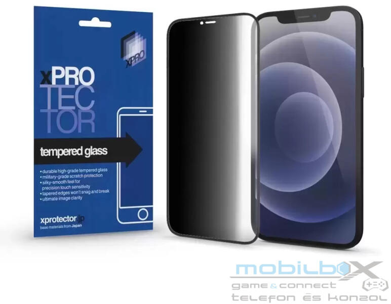 XPRO Tempered Glass 0.33 Full 3D Black FG PRIVACY kijelzővédő üveg / üvegfólia Apple iPhone 15 Pro készülékhez Teljes kijelzőt védő, speciálisan edzett, valódi üveg réteget befoglaló kompozit struktúra, kerekített szélekkel, 9H keménységgel, melyet még hegyes tárgyakkal, nagy erővel is nehéz megkarcolni. Különleges, polarizált felépítésével 30°-ra csökkenti a bet