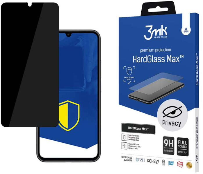 3MK HardGlass Max Privacy iPhone 15 Pro 6.1", teljes képernyős ujjlenyomamentes edzett üvegfólia, fekete