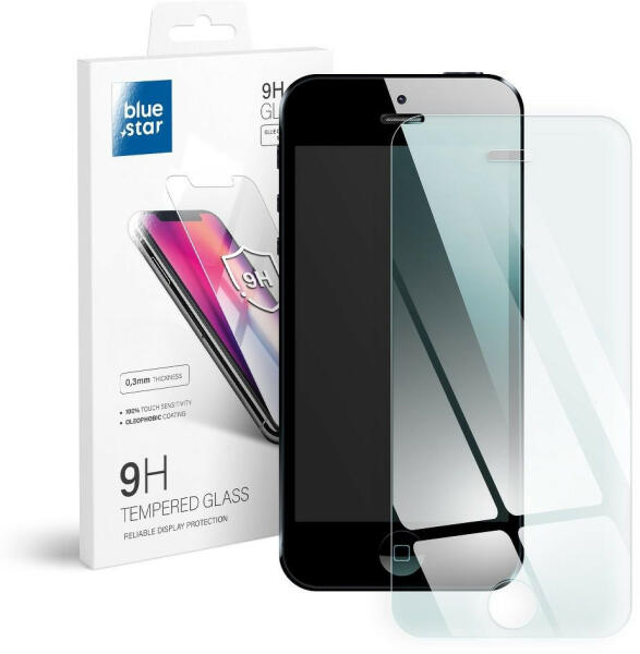 iPhone 5C / 5 / 5S / SE üvegfólia, tempered glass, előlapi, edzett, Bluestar részletes leírása : Az üvegfólia iPhone 5C, iPhone 5, iPhone 5S és iPhone SE (4") mobiltelefon képernyőjéhez igazodva lett kialakítva, amely a képernyő sík részén teljesen feltapad és lefedi, ezálltal hatékony védelmet nyújt a karcolások ellen készülékének. A védőfólia 100%-ban átlátszó,