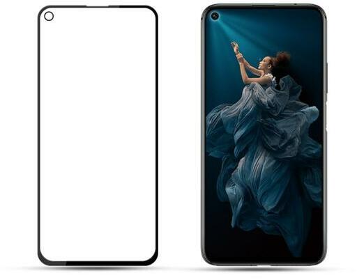 Huawei Honor 20 Pro teljes lefedettséget biztosító Karcálló, ütésálló kijelzővédő üvegfólia kerettel, tempered glass, törlőkendővel