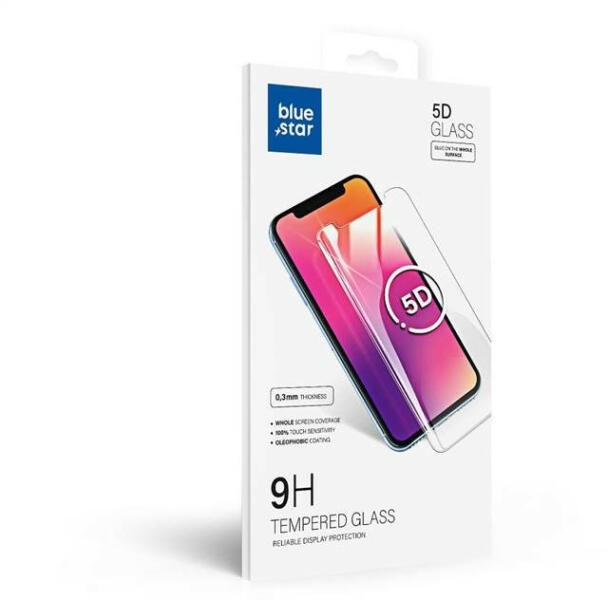 Az edzett üveg Blue Star 5D Full Glue tökéletes védelmet nyújt a mobiltelefon képernyőjének a felső peremtől az alsó részig. Az 5D technológia eredményeképpen a teljes képernyő lefedése, beleértve a kijelző lekerekítését is. Nagyon jól illeszkedik, így nincs helye a szennyeződésnek és a pornak. A rendkívül alacsony, 0,3 mm-es vastagságnak köszönhetően teljesen és