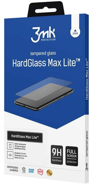 3MK HardGlass Max Lite üveg Samsung Galaxy A52 4G/5G/A52s 5G/A52s 5G HardGlass Max Lite - az Önre szabott tartósság Üveg különleges feladatokra A HardGlass Max Lite három előnyt kínál: maximális védelem a teljes képernyő számára, kivételesen egyszerű telepítés és az ujjlenyomatnyomok megelőzése. Mindössze 0,3 mm vastagságával és kristálytiszta szerkezetével garantálj