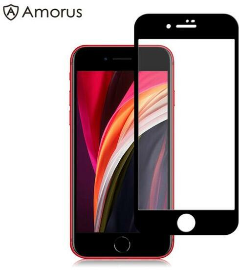 Apple Iphone SE (2020) teljes lefedettséget biztosító Karcálló, ütésálló kijelzővédő üvegfólia fekete kerettel, tempered glass, törlőkendővel