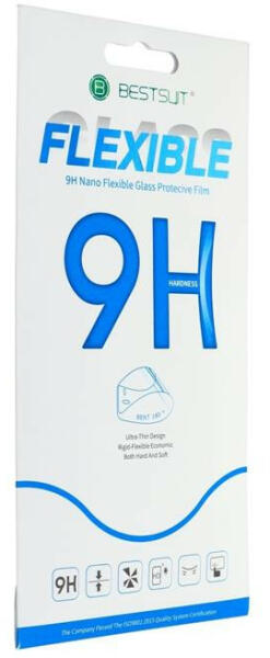 Rugalmas hibrid üveg a Bestsuit-tól ultravékony kialakítással. Mivel az üveg nem fedi le a teljes képernyőt, rendkívül könnyen felszerelhető még az átlagos felhasználó számára is. A modern formulának köszönhetően jól tapad a képernyőhöz, megvédve azt a karcolásoktól. A nagyfokú átlátszóság tökéletes képtisztaságot biztosít. A 0,265 mm-es edzett üveg és a PE