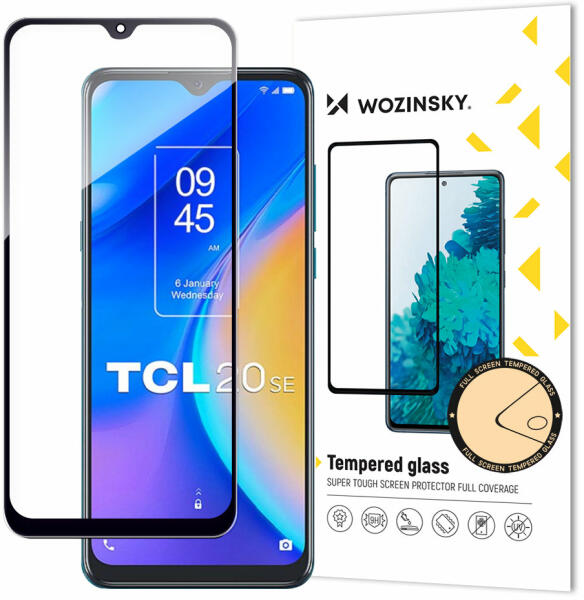 Wozinsky edzett védőüveg a TCL 20 SE telefonhoz - Fekete Ez a rendkívül ellenálló edzett védőüveg ragasztóval a teljes felületén a Wozinsky cégtől a legjobb példa arra, hogy a védelemnek nem szükséges akadályozni a kényelmes használatot. Az üveg több rétegű, karcolódás elleni védelemmel. Kitűnően védi a telefon kijelzőjét a teljes felületét borító ragasztóré