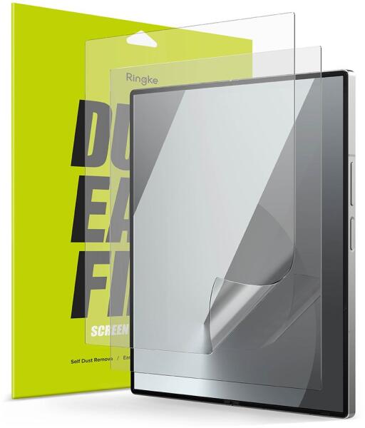 Kristálytiszta Ringke Dual Easy védőfólia, amely lefedi a teljes képernyőfelületet. Magas minőségű uretán poliuretánból készült és 3H karcállósággal rendelkezik, ami hatékonyan véd a sérülésektől. A fólia tökéletesen visszaadja a megjelenített színeket és speciális, zsírral szemben ellenálló bevonattal rendelkezik, amely megakadályozza az ujjlenyomatok maradás
