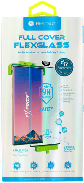 Flexible hybrid üveg Bestsuit-tól ultra vékony kivitelben. Mivel az üveg nem fedi le az egész képernyőt, rendkívül könnyen telepíthető az átlagos felhasználó számára is. A modern formulának köszönhetően jól tapad a képernyőhöz, és védi azt a karcolásoktól. A magas átlátszóság tökéletes képélességet biztosít. A 0,265 mm vastag edzett üveg és a PET fólia egy