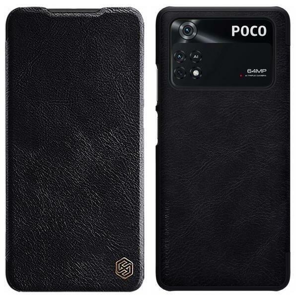 Xiaomi Poco M4 Pro 5G fekete Nillkin Qin Pro flip tok, oldalra nyíló, bankkártya tartó kamera védelem Fekete, Flip, Nillkin