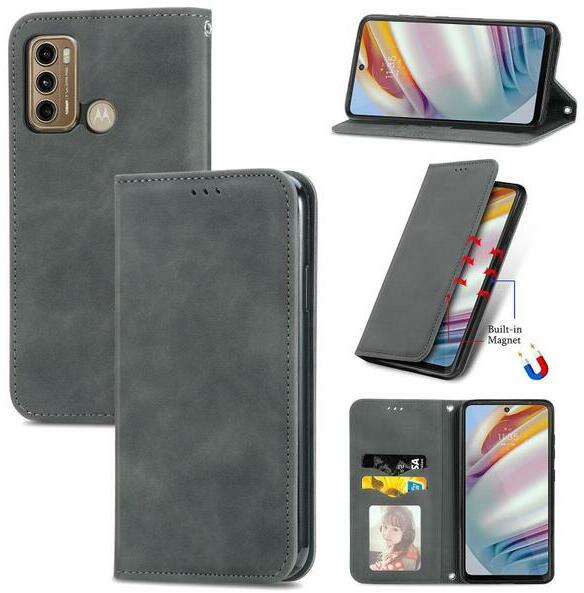 Motorola Moto G60 Szürke retro ultravékony, mágneses, oldalra nyíló, flip bőr tok, kártyatartóval Szürke, Oldalra nyíló, Flip, PartOcean