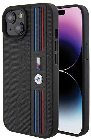BMW BMHCP15S22PPMK iPhone 15 6.1", Tricolor M Collection hátlap, tok, fekete