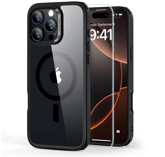 , APPIPHONE16PROMAX, Apple iPhone 16 Pro Max, iPhone 16 Pro Max ESR HYBRID HALOLOCK szilikon telefonvédő ütésállóság, MagSafe + képernyővédő üveg, ÁTLÁTSZÓ/FEKETE