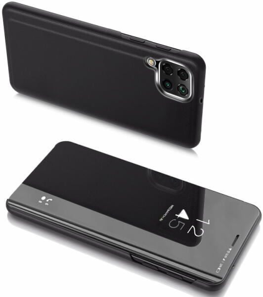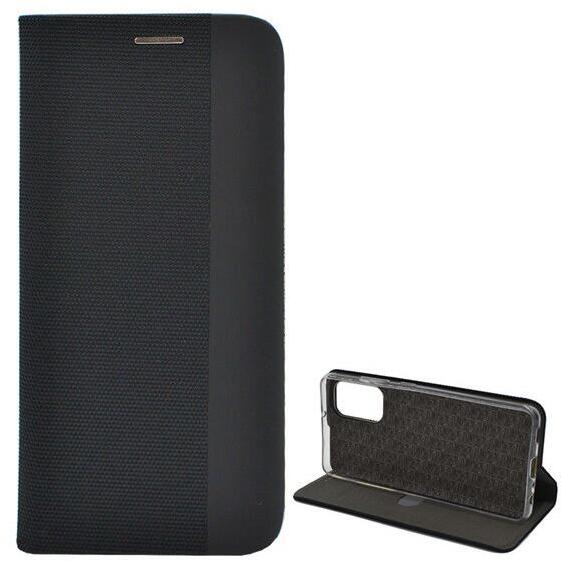 Tok álló, bőr hatású (FLIP, oldalra nyíló, asztali tartó funkció, textil minta) FEKETE [Samsung Galaxy A32 4G (SM-A325)] Fekete, Flip, PartOcean