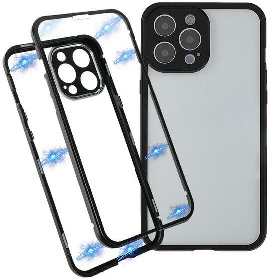 Apple Iphone 13 Pro Max mágneses fekete fém keretes edzett üveggel hát- és előlappal