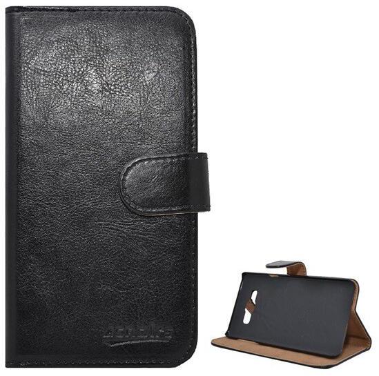 Tok álló, bőr hatású (FLIP, oldalra nyíló, asztali tartó funkció, prémium) FEKETE [Samsung Galaxy A7 (2015) SM-A700F] Fekete, Flip, PartOcean