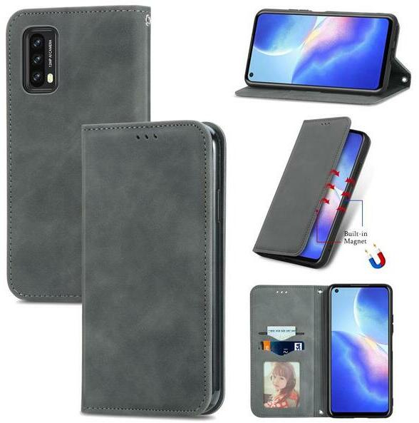 Blackview A90 Szürke retro ultravékony, mágneses, oldalra nyíló, flip bőr tok, kártyatartóval Szürke, Oldalra nyíló, Flip, PartOcean