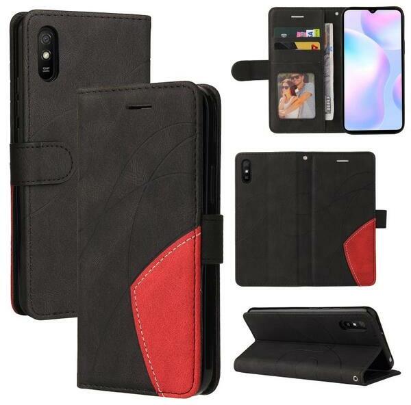 Xiaomi Redmi 9A kétszínű oldara nyíló naptár, notesz tok fekete Fekete, Oldalra nyíló, PartOcean