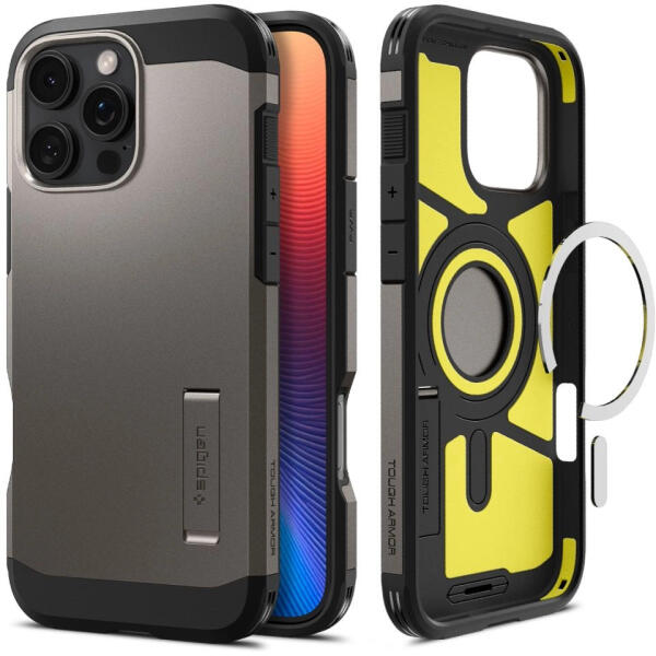Spigen Tough Armor MagSafe iPhone 16 Pro Max ütésálló kemény hátlap, tok, gunmetal, sötétszürke ACS08012