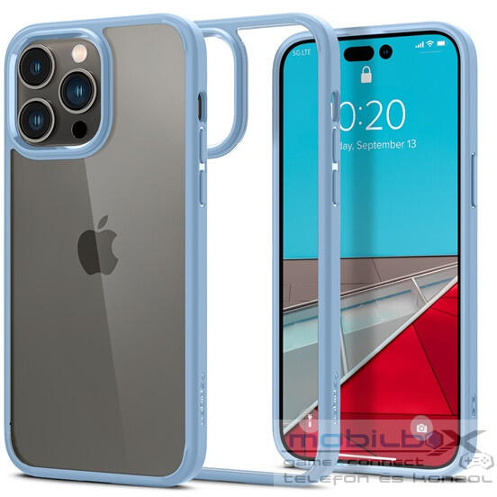 Spigen Crystal Hybrid Apple iPhone 14 Pro Sierra Blue tok, kék Tisztán látható a legjobb átlátszó védelem A Crystal Hybrid-ben a tökéletesen tiszta tok minden eleme megtalálható. Megerősített elszíneződés-álló polikarbonát réteg egy rázkódás elnyelő TPU réteggel ötvözve, hogy a tökéletes egyensúlyt találja el a minimalizmus és a védelem között. Láthatjuk tehát