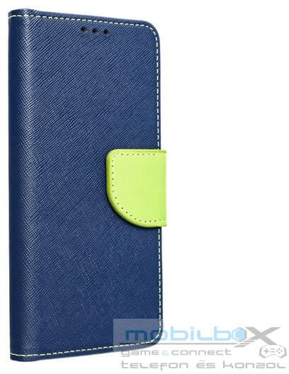 Fancy Apple iPhone 14 Pro flip tok, kék-lime Mágneses pánttal ellátott kihajtható flip tok, mely kártyatartóval is rendelkezik, valamint ha videót/filmet szeretnél nézni, ki is támaszthatod. A védelmet a szilikon foglalaton kívül a poliuretán elő- és hátlap biztosítja.