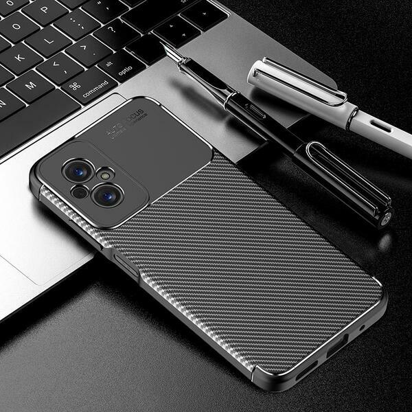 Xiaomi Redmi 11 Prime fekete szénszálas (Carbon Fiber) mintázatú ütésálló TPU tok Fekete, TPU, PartOcean