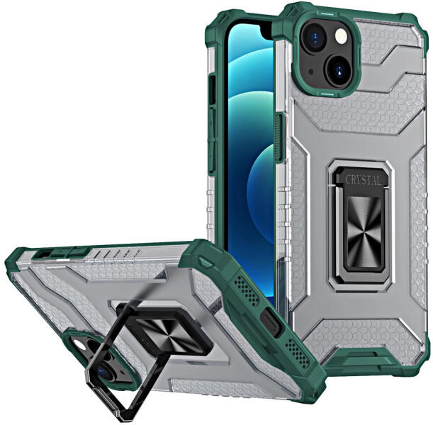 Crystal Ring Case Kickstand ütésálló tok, iPhone 12 mini, zöld Crystal Ring Case páncélozott hibrid tok borító + mágneses tartó Hibrid védő tok Kétrészes kialakítás - Az ütésálló TPU tok merev polikarbonát (PC) fedőréteggel van megerősítve . Beépített gyűrűtartó - a borító hátuljába egy rendkívül praktikus gyűrűtartó van beépítve, amelyet az ujjadra helyez
