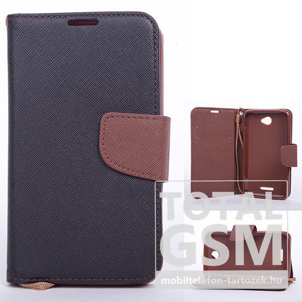 Huawei Y6 II (Y6 2) fekete-barna csatos notesz TPU-bőr flip tok.