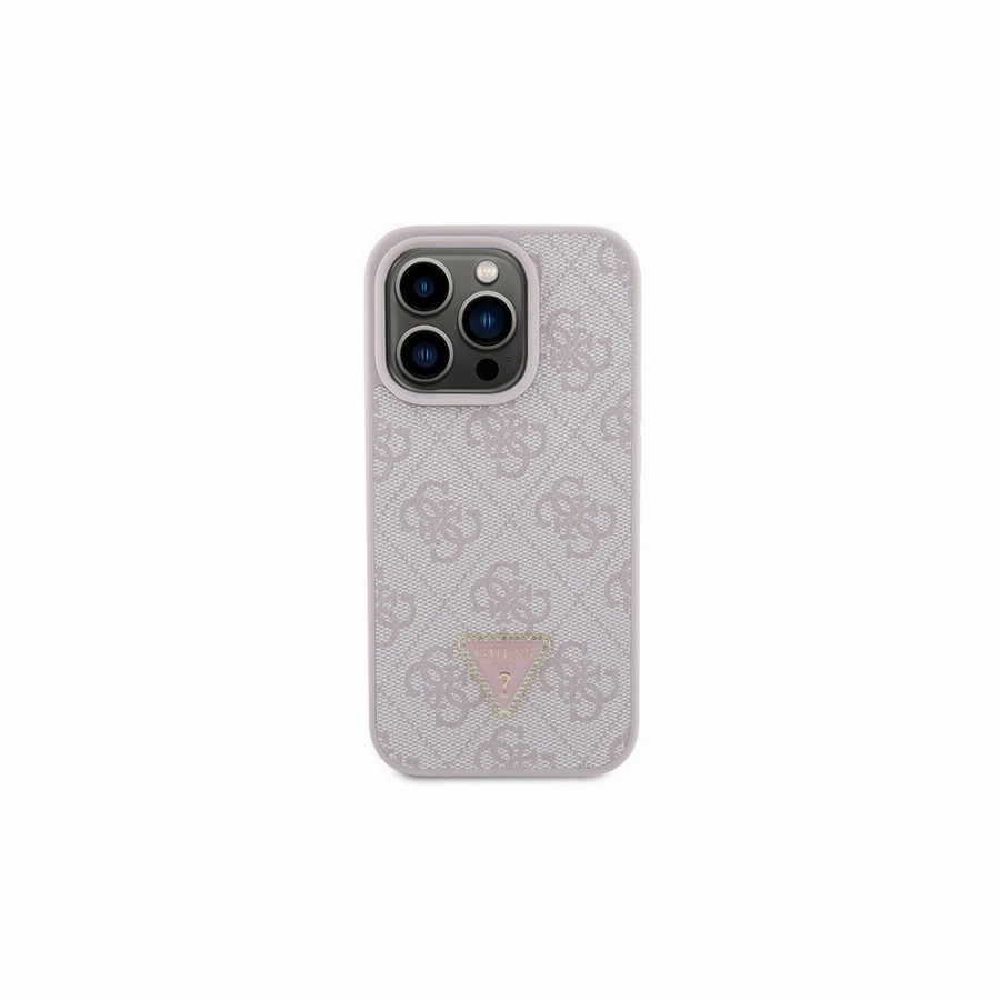 Guess - iPhone 15 Pro tok Guess Leather 4G Triangle Strass Az exkluzív, egyedi kialakítású tok a neves Guess divatházzal együttműködésben készült - tökéletes választás a modern kiegészítők szerelmeseinek. A stílust és a presztízst értékelő, ugyanakkor elegánsan kinézni vágyók számára pótolhatatlan kiegészítője a ruhatárnak, átfogó védelmet nyújtva okostelefon