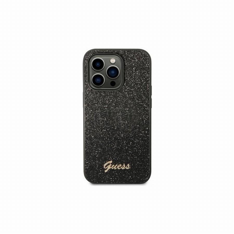 Guess iPhone 14 Pro hátlap tok GUESS Glitter Script A GUESS Glitter Script Collection a védőtokok exkluzív gyűjteménye. A kollekciót egy csillogó csillámréteg és egy fém arany guess LOGÓ jellemzi vintage stílusban. a tok az elképesztő vizuális effektusok mellett garantálja a telefon biztonságát a nem kívánt karcolásokkal és sérülésekkel szemben. a tok kiváló minőség