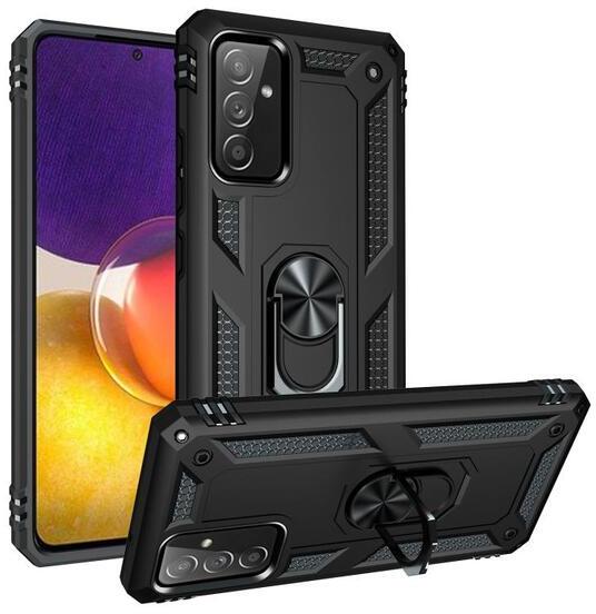 Samsung Galaxy A82 5G fekete hibrid PC TPU Műanyag hátlap tok, közepesen ütésálló, defender, szilikon belső, telefontartó gyűrű Fekete, TPU, PartOcean