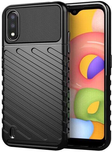 Szilikon telefonvédő (közepesen ütésálló, csíkos, dombor minta) FEKETE [Samsung Galaxy A01 (SM-A015F)] Fekete, PartOcean