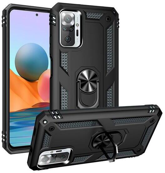 Xiaomi Redmi Note 10 Pro Max fekete hibrid PC TPU Műanyag hátlap tok, közepesen ütésálló, defender, szilikon belső, telefontartó gyűrű Fekete, TPU, PartOcean