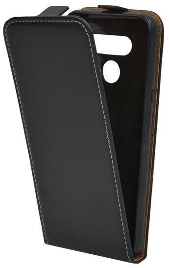 Tok álló, bőr hatású (FLIP, lefelé nyíló, szilikon tartó) FEKETE [LG Q60 (LMX525)] Fekete, Flip, PartOcean